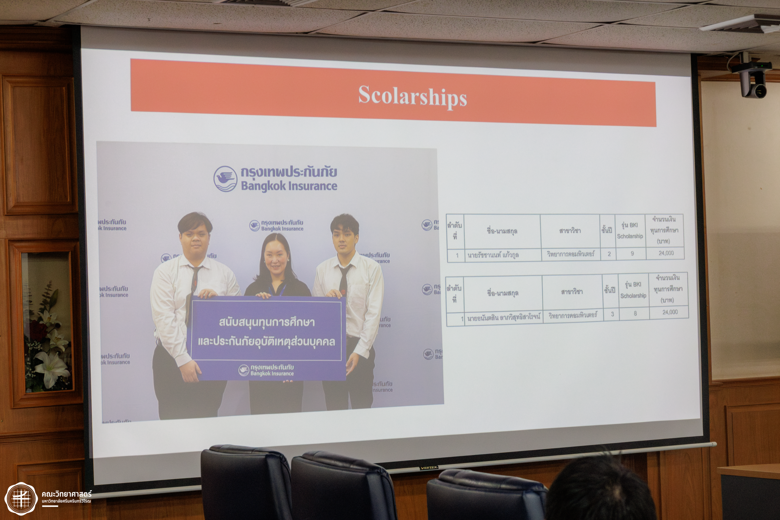 และ มหาวิทยาลัยศรีนครินทรวิโรฒ (คณะวิทยาศาสตร์ ภาควิชาวิทยาการคอมพิวเตอร์)” โดยได้รับเกียรติจาก คุณภัทรพร เทิดชนะกุล รองผู้อำนวยการอาวุโส บริษัท กรุงเทพประกันภัย จำกัด (มหาชน)