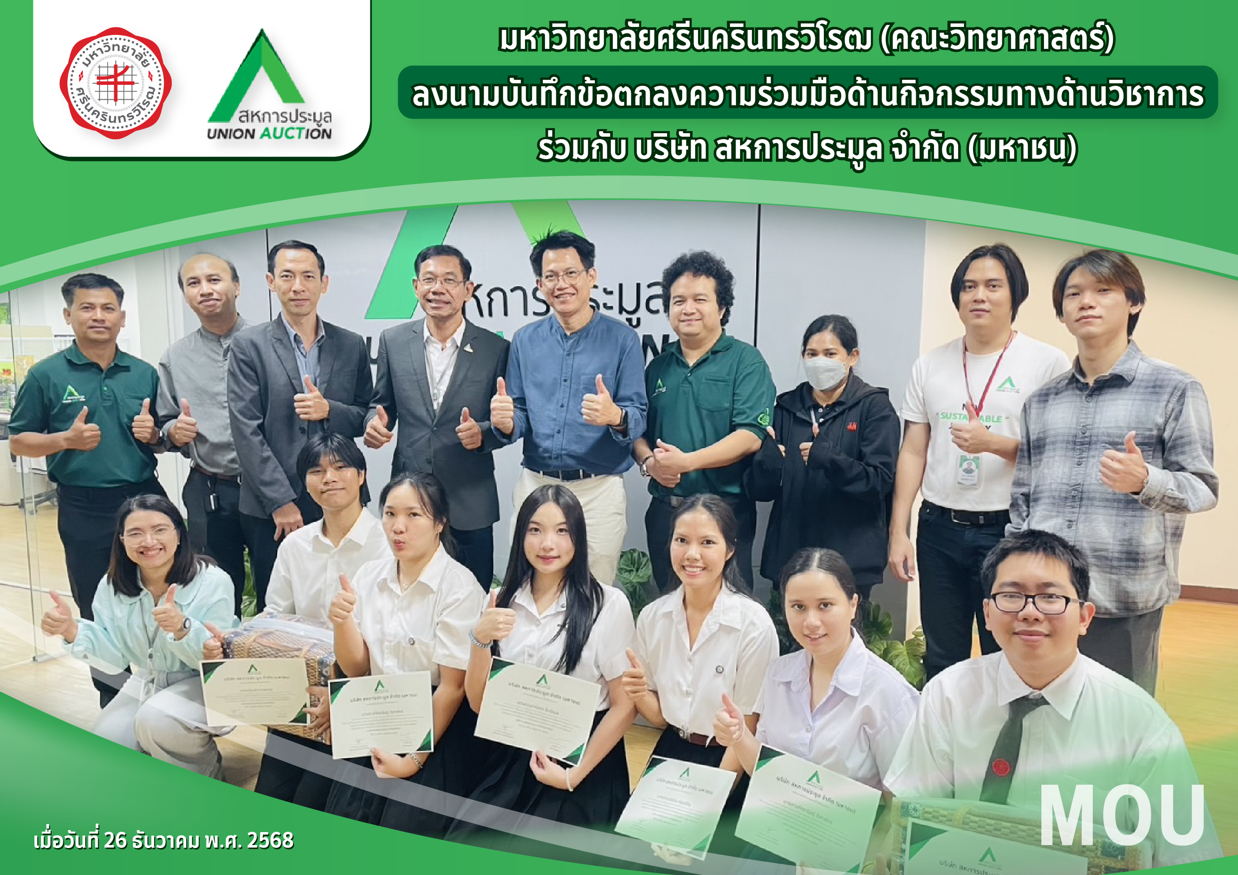 ศาสตราจารย์ ดร.ปรินทร์ ชัยวิสุทธางกูร รองอธิการบดีฝ่ายวิจัยและนวัตกรรม รักษาการคณบดีคณะวิทยาศาสตร์ มหาวิทยาลัยศรีนครินทรวิโรฒ เข้าร่วมลงนามใน “พิธีลงนามบันทึกข้อตกลงความร่วมมือ ระหว่าง บริษัท กรุงเทพประกันภัย จำกัด (มหาชน) และ มหาวิทยาลัยศรีนครินทรวิโรฒ (คณะวิทยาศาสตร์ ภาควิชาวิทยาการคอมพิวเตอร์)” โดยได้รับเกียรติจาก คุณภัทรพร เทิดชนะกุลรองผู้อำนวยการอาวุโส บริษัท กรุงเทพประกันภัย จำกัด (มหาชน) ร่วมลงนามฯ เมื่อที่ 16 ธันวาคม 2568 เวลา 13.30 น. ณ ห้องประชุม 19-903 ชั้น 9 อาคาร 19 คณะวิทยาศาสตร์ มหาวิทยาลัยศรีนครินทรวิโรฒ โดยมี คณะผู้บริหาร คณะวิทยาศาสตร์ มหาวิทยาลัยศรีนครินทรวิโรฒ อ.ดร.เรืองศักดิ์ ตระกูลพุทธิรักษ์ หัวหน้าภาควิชาวิทยาการคอมพิวเตอร์ พร้อมด้วย คณาจารย์ และบุคลากรภาควิชาวิทยาการคอมพิวเตอร์ เข้าร่วม รายละเอียดเพิ่มเติม กรุณาติดต่อ : ภาควิชาวิทยาการคอมพิวเตอร์ คณะวิทยาศาสตร์ มศว โทร. 02-649-5000 ต่อ 18433